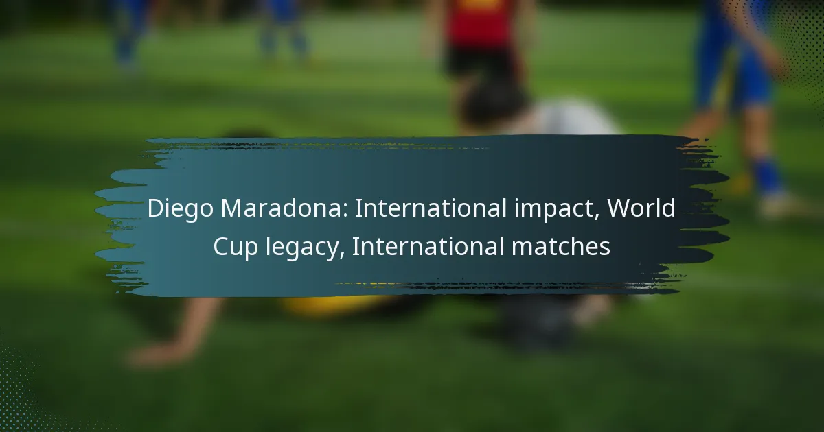 Diego Maradona’s international impact on football is profound, influencing the sport’s culture and popularity worldwide. His legacy, particularly highlighted by his extraordinary performances in the 1986 World Cup, has solidified his status as one of football’s greatest icons. Throughout his remarkable career, Maradona showcased exceptional skill and creativity, significantly contributing to Argentina’s success on the international stage.